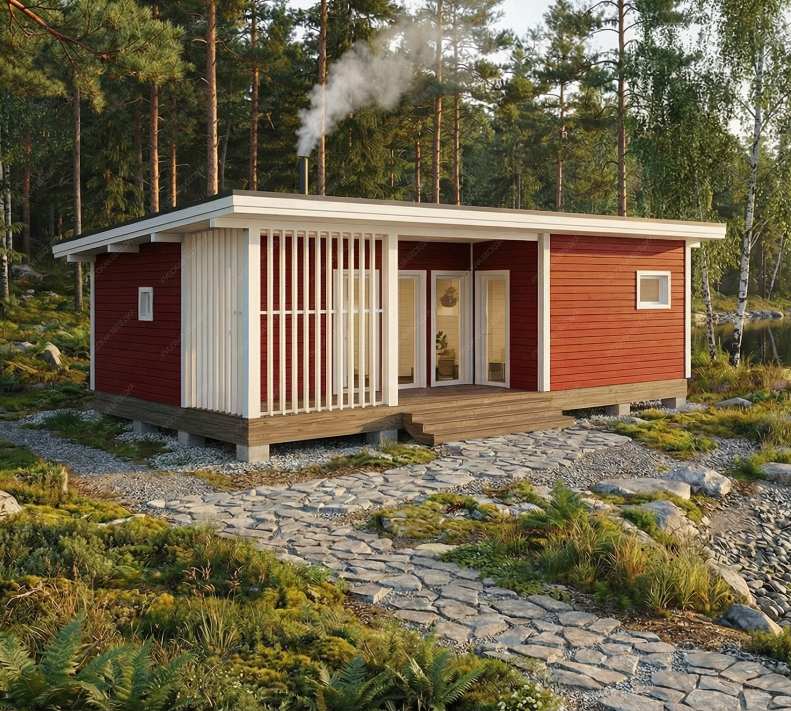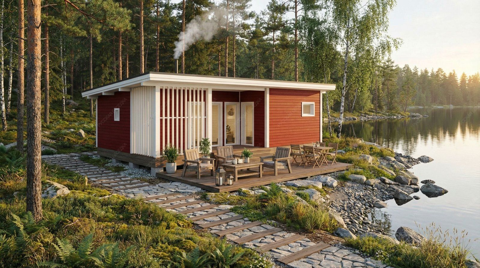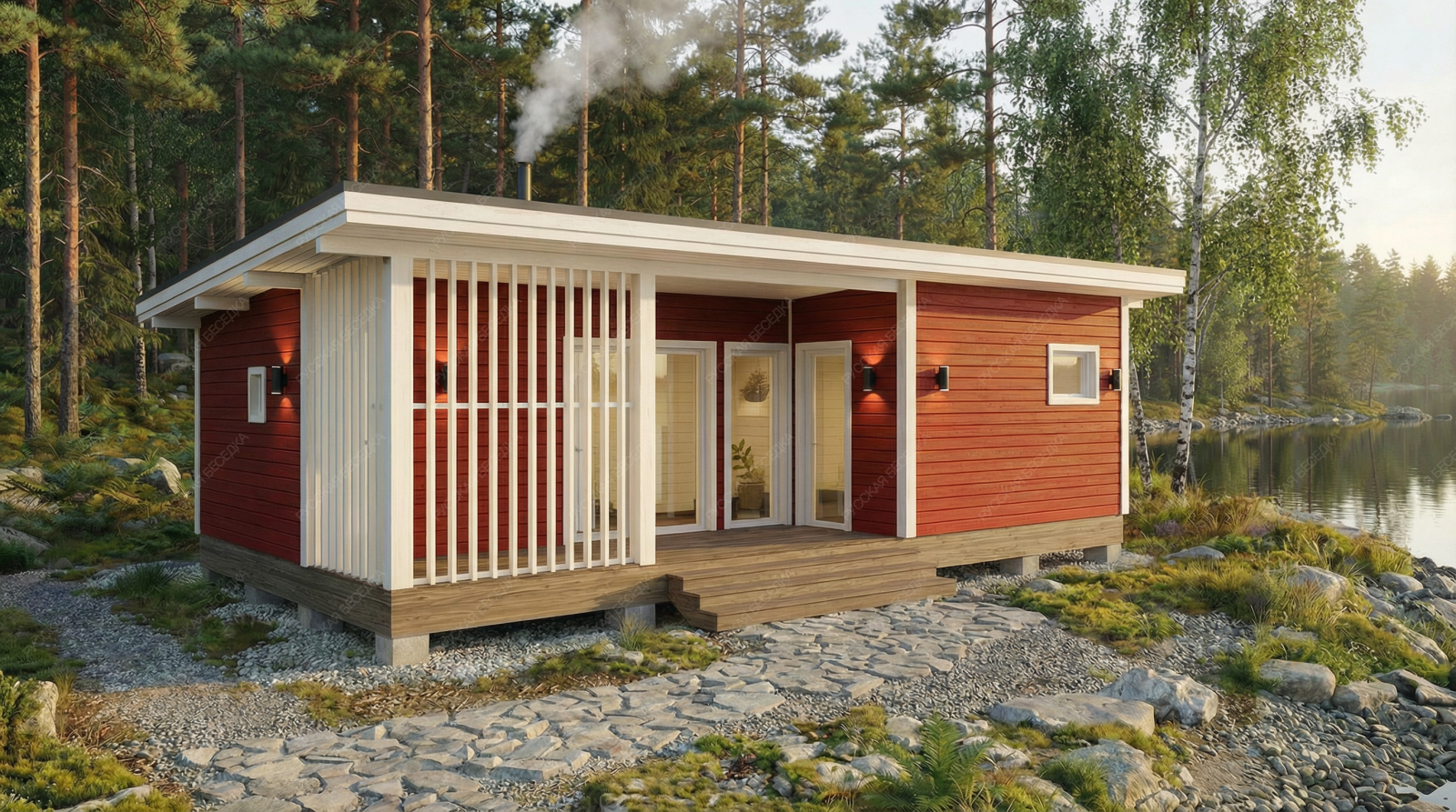 Огнебиозащита (бесцветная) или декоративный деревозащитный состав "Здоровый дом" (цвет на выбор) – нижняя обвязка, лаги, пол и цокольная доска.