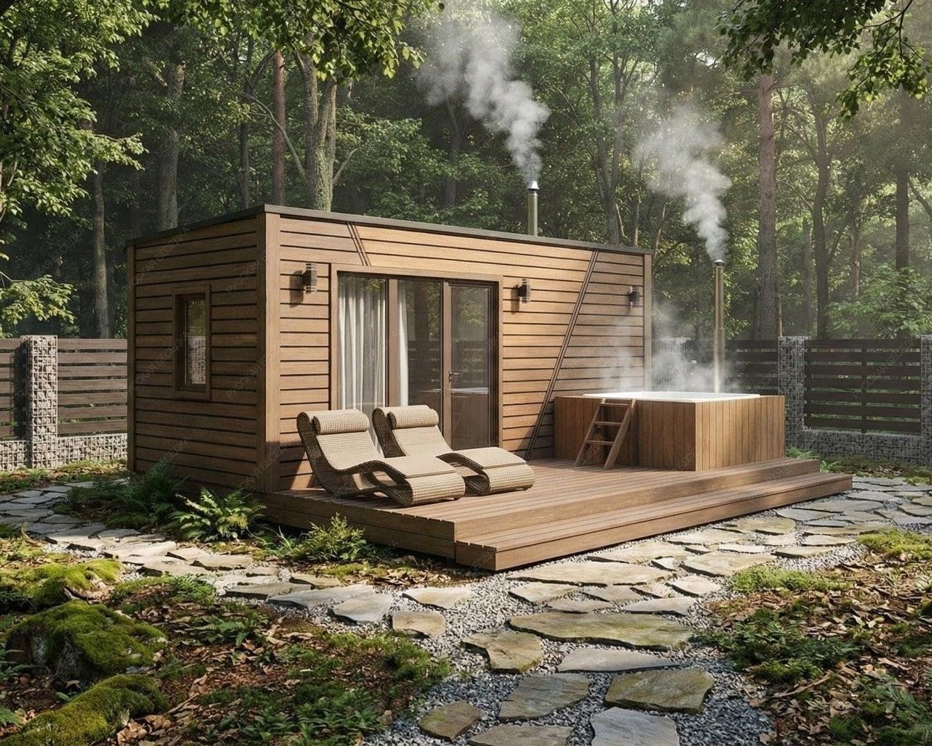 Баня «Равелла» — образец эргономичной и сбалансированной планировки, где даже на ограниченной площади достигнута полная функциональность. Её отличительная черта — симметричная компоновка: площадь открытой террасы (10,76 м²) практически равна площади внутренних помещений, что создает гармоничное равновесие между закрытым пространством и отдыхом на природе.  Внутренняя организация продумана с максимальной рациональностью. Комфортная парная (4,5 м²) с традиционным окном-форточкой обеспечивает качественный легкий пар. Отдельный душевой отсек повышает уровень гигиены и удобства, а уютная комната отдыха (6,97 м²) предназначена для расслабления после процедур. Односкатная крыша и компактные общие габариты (2,5х5,95 м) придают строению современный, аккуратный вид, идеально подходящий для участков с ограниченным пространством.  Качественная древесина и точный конструктив гарантируют эффективное теплосбережение и долговечность. Проект «Равелла» предлагает законченное решение для ценителей классической бани, где в минимальных габаритах собрано всё необходимое для полноценного отдыха и оздоровления, делая эту модель практичным и осознанным выбором.