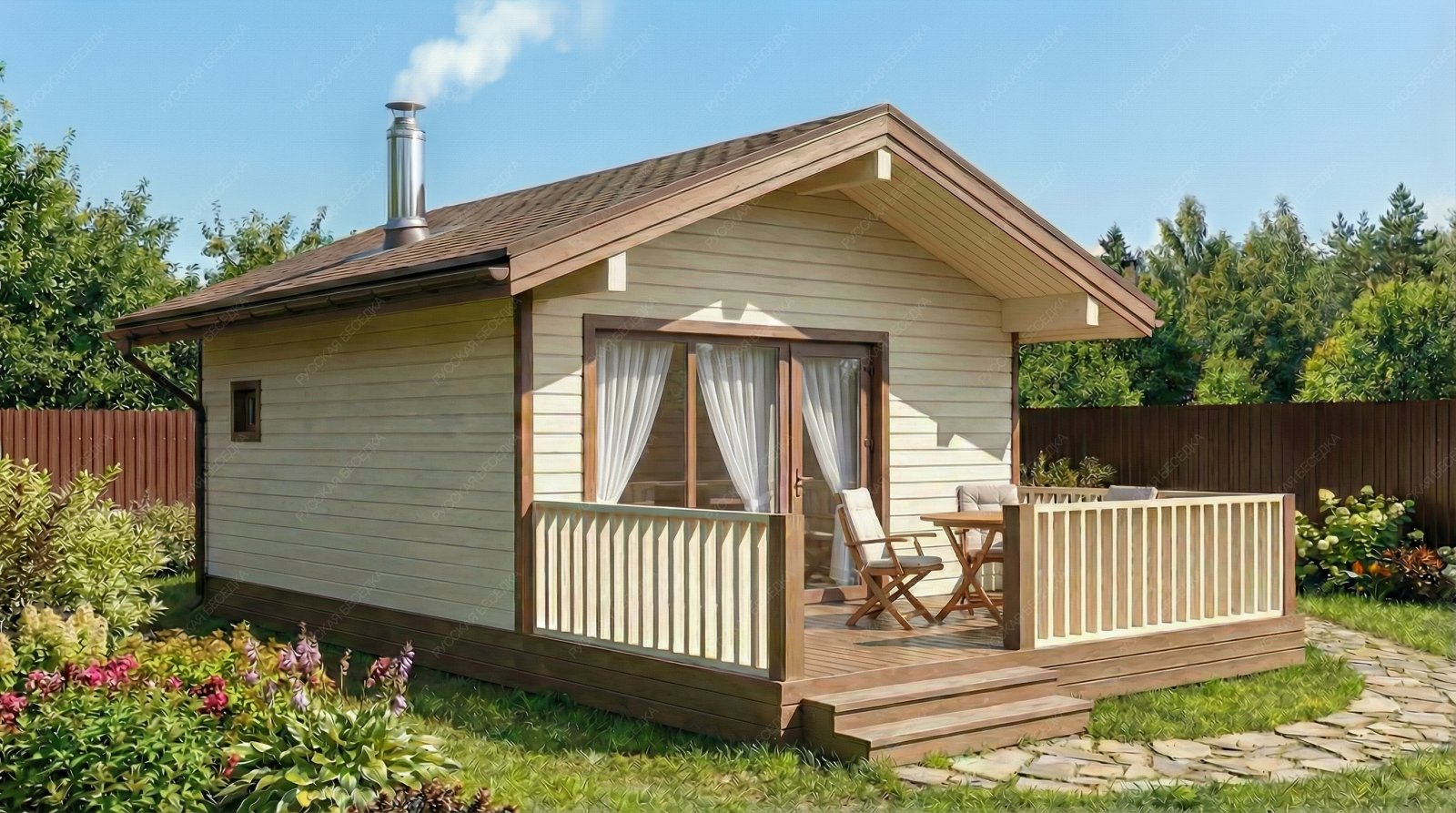 Огнебиозащита (бесцветная) или декоративный деревозащитный состав "Здоровый дом" (цвет на выбор) – нижняя обвязка, лаги, пол и цокольная доска.
