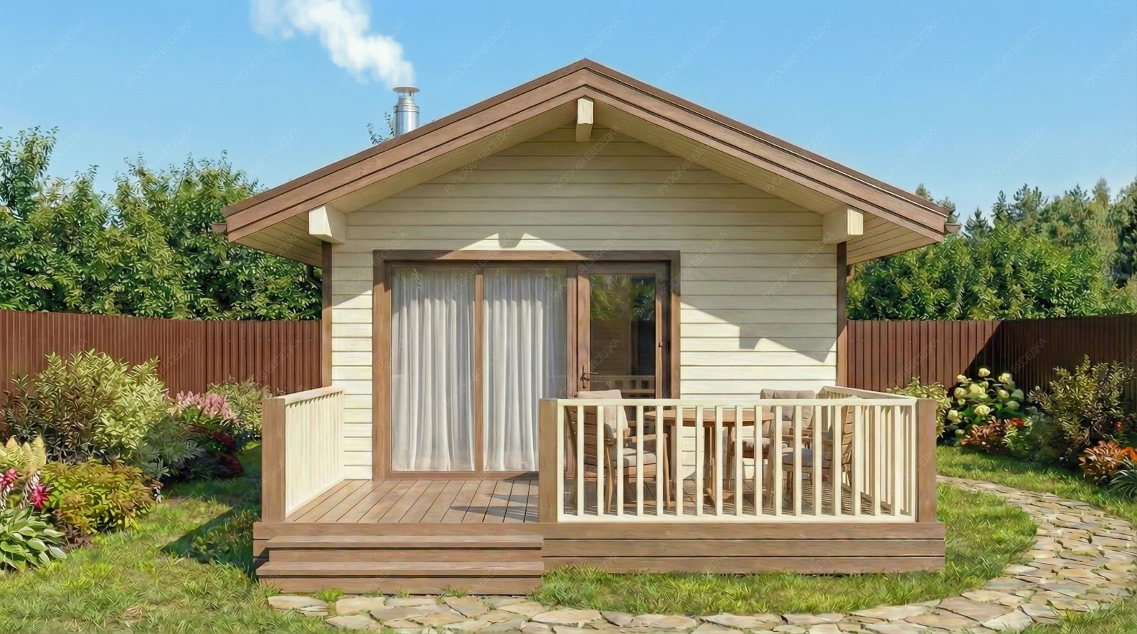 Вся конструкция обрабатывается декоративным деревозащитным составом в 2 слоя - при необходимости дополнительно.