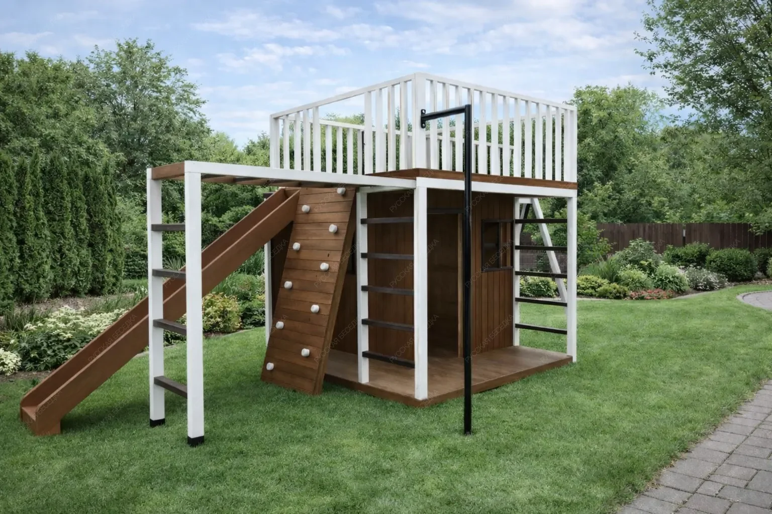 Деревянные детские спортивные комплексы — это пространство, где рождается сила, ловкость и уверенность в себе. Натуральное дерево, экологичное и тактильно тёплое, создаёт особую атмосферу уюта и безопасности, принципиально отличаясь от холодного металла. Это не просто снаряды, а настоящий островок приключений, который растёт и меняется вместе с ребёнком. Каждый комплекс представляет собой модульную систему, где базовую конструкцию дополняют разнообразные элементы. Гладкая горка для весёлого скольжения, мини-скалодром для развития координации, классические качели, рисующие в воздухе плавные дуги, и надёжный турник для формирования правильной осанки. Верёвочные лестницы и канаты учат балансу и работе с собственным весом, а баскетбольное кольцо оттачивает точность броска. Секция с лестницей может быть расположена под любым углом, создавая уникальную траекторию для лазания. Такая вариативность позволяет создавать сооружение под конкретные задачи и доступное пространство. Все комплектующие можно комбинировать и заменять, адаптируя игровую зону под взросление ребёнка и появление новых интересов. Конструкции отличаются безупречным качеством обработки: отшлифованная древесина, исключающая занозы, прочные соединения и устойчивость к нагрузкам. Это капитальное вложение в физическое развитие, где каждая деталь продумана для активных игр и безопасного штурма вершин.