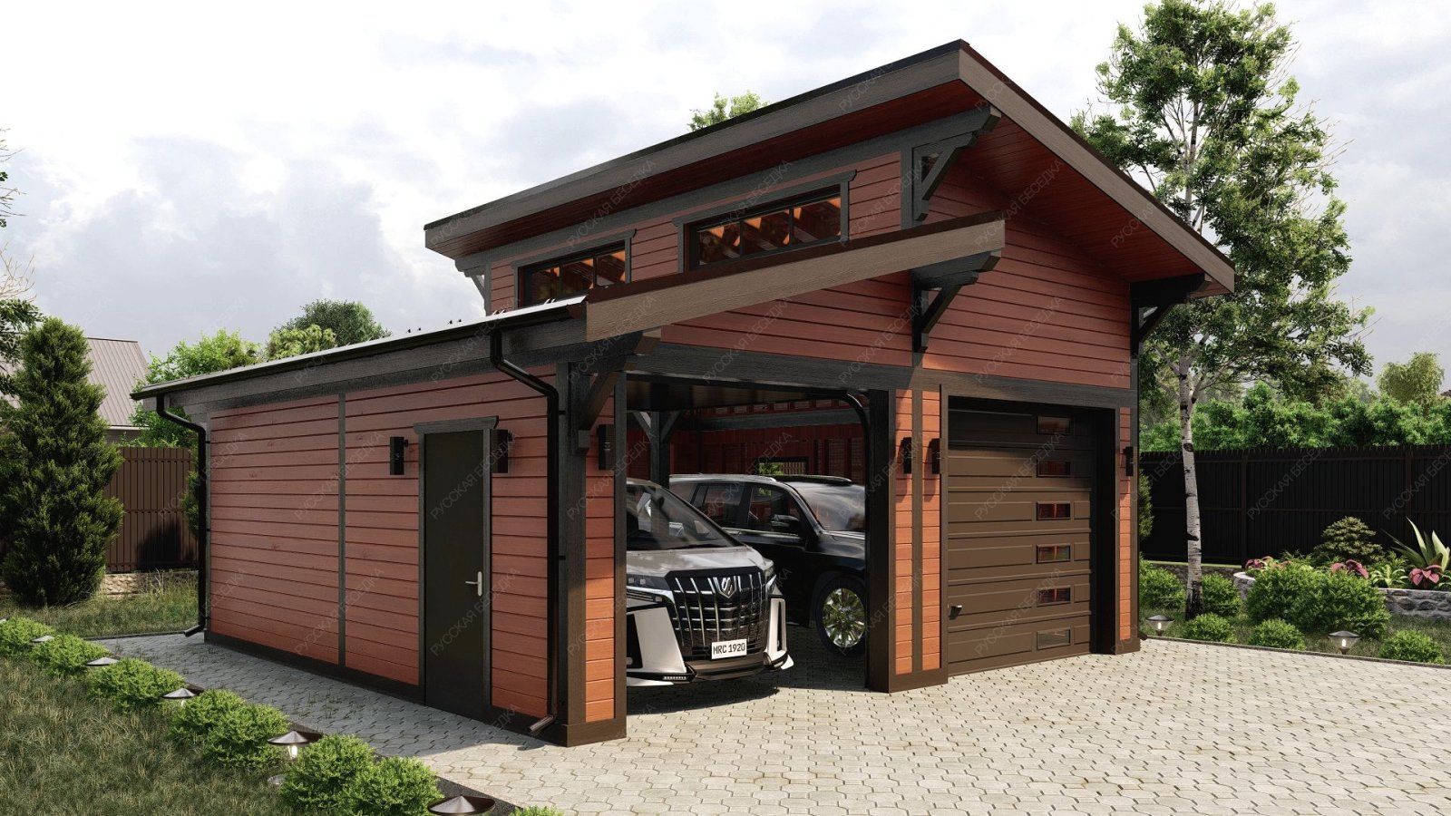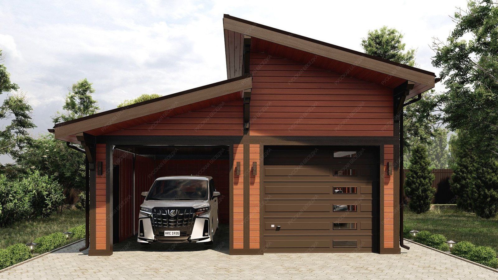 Гараж с ломаной кровлей на 2 автомобиля Дятлино