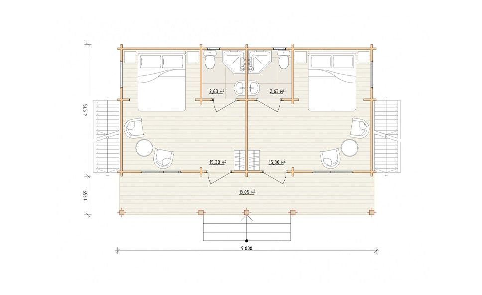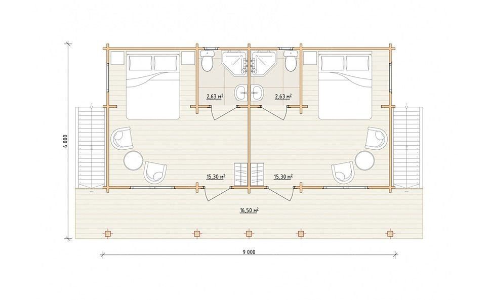 • Стеновой комплект: мини-брус камерной сушки 44мм×145 мм. с чашами под проект