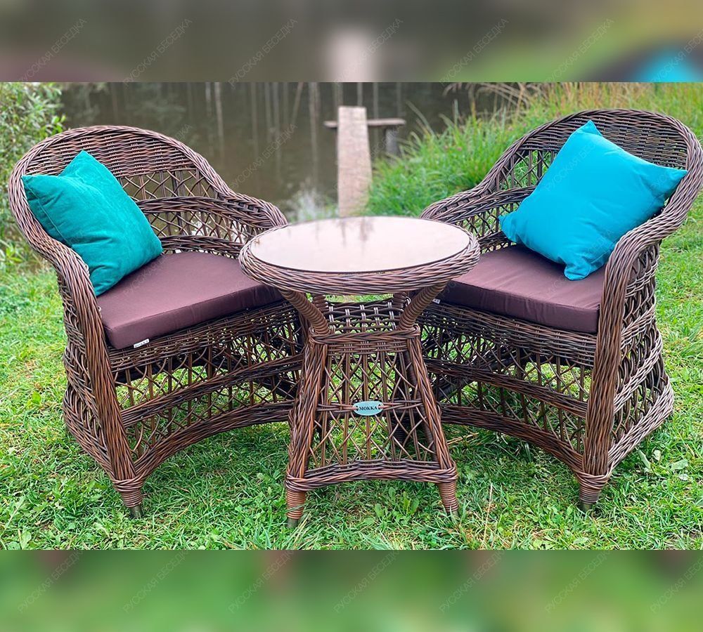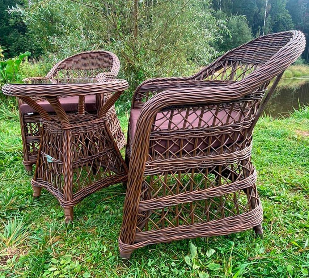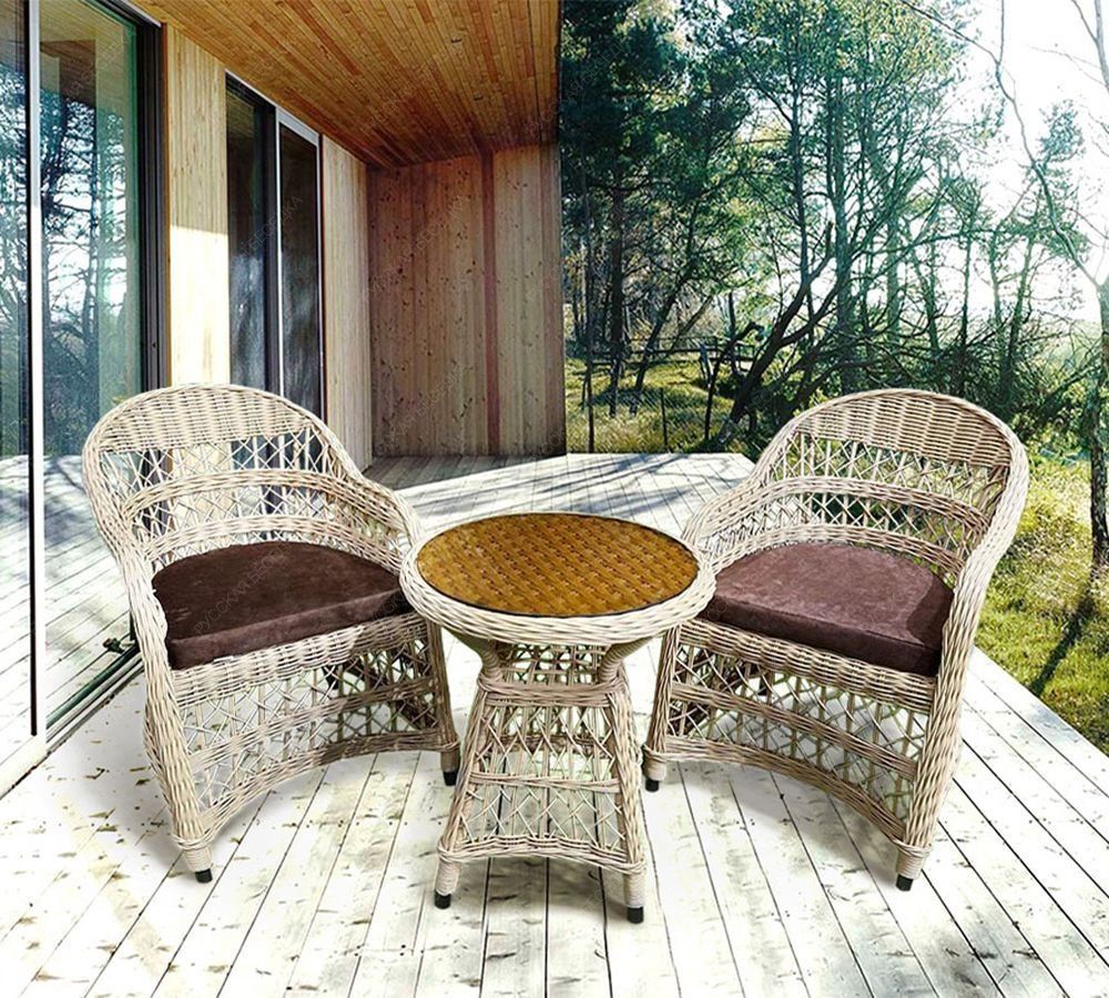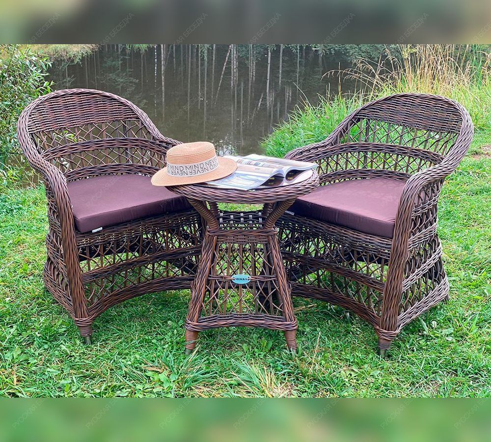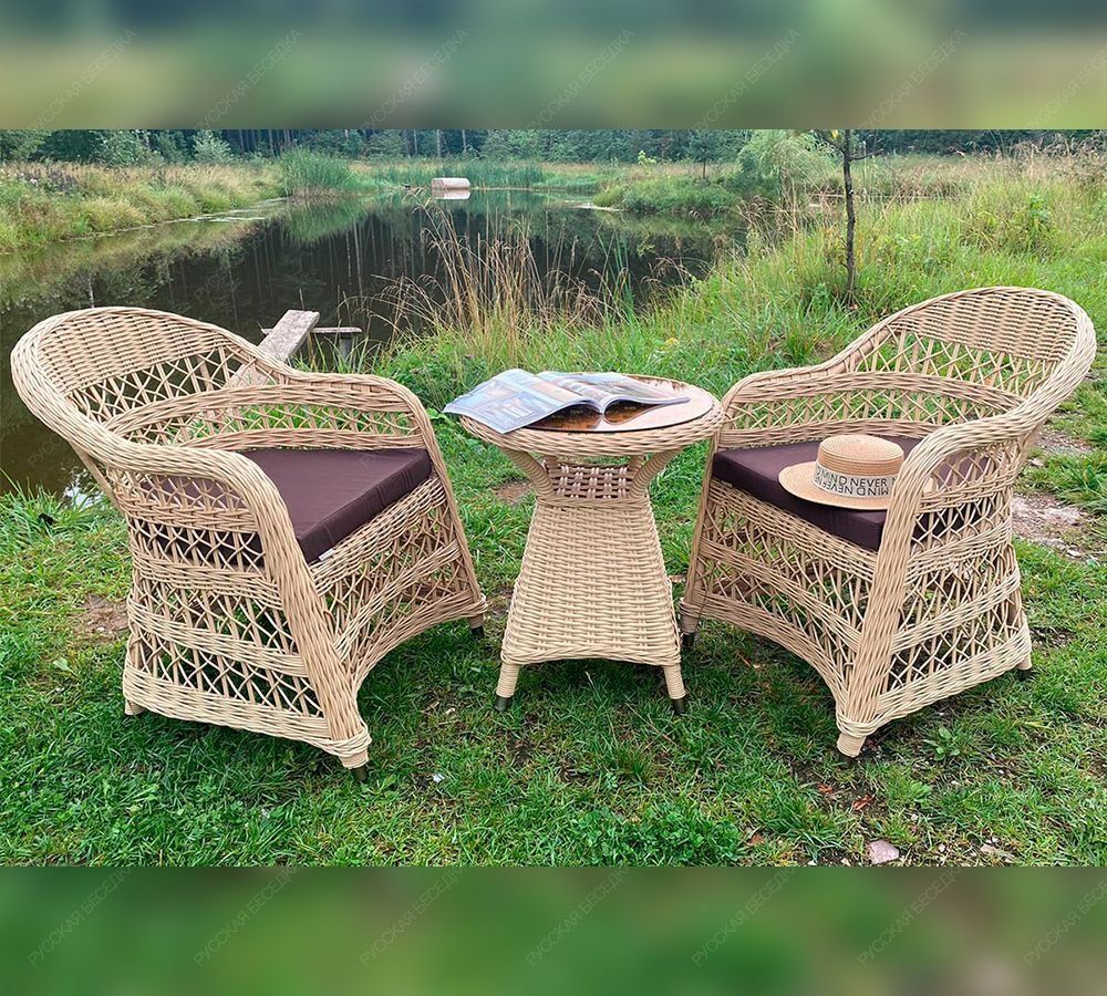 Минималистичная коллекция LORETO прекрасно подойдет для оформления зоны отдыха на балконе в городской застройке. Элегантный кофейный столик и два кресла с ажурным плетением и удобными подлокотниками создадут атмосферу аристократичного Лондона у Вас дома.