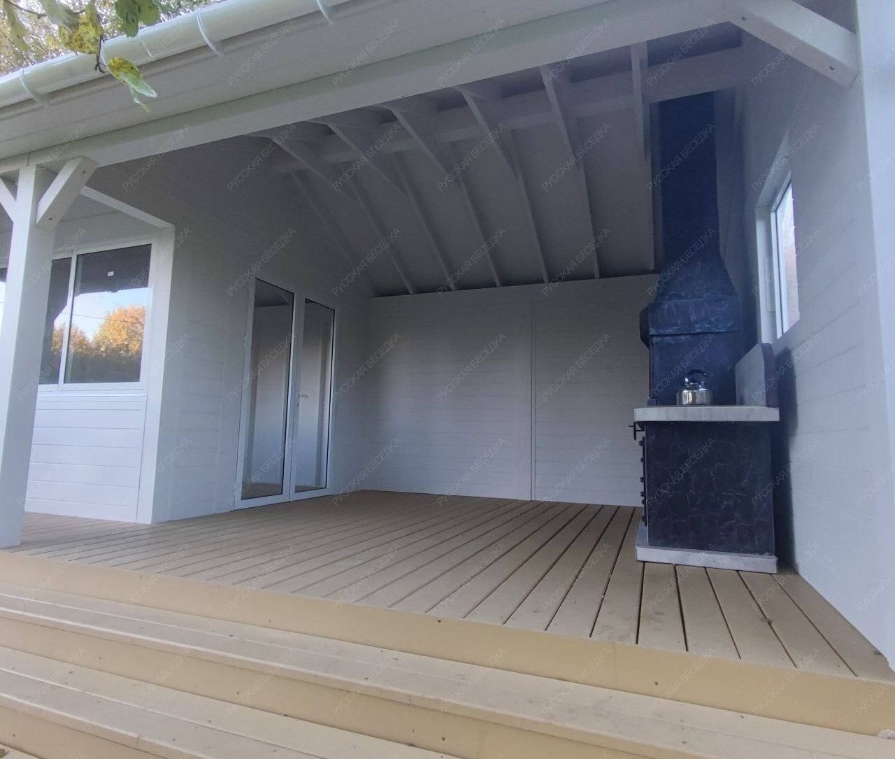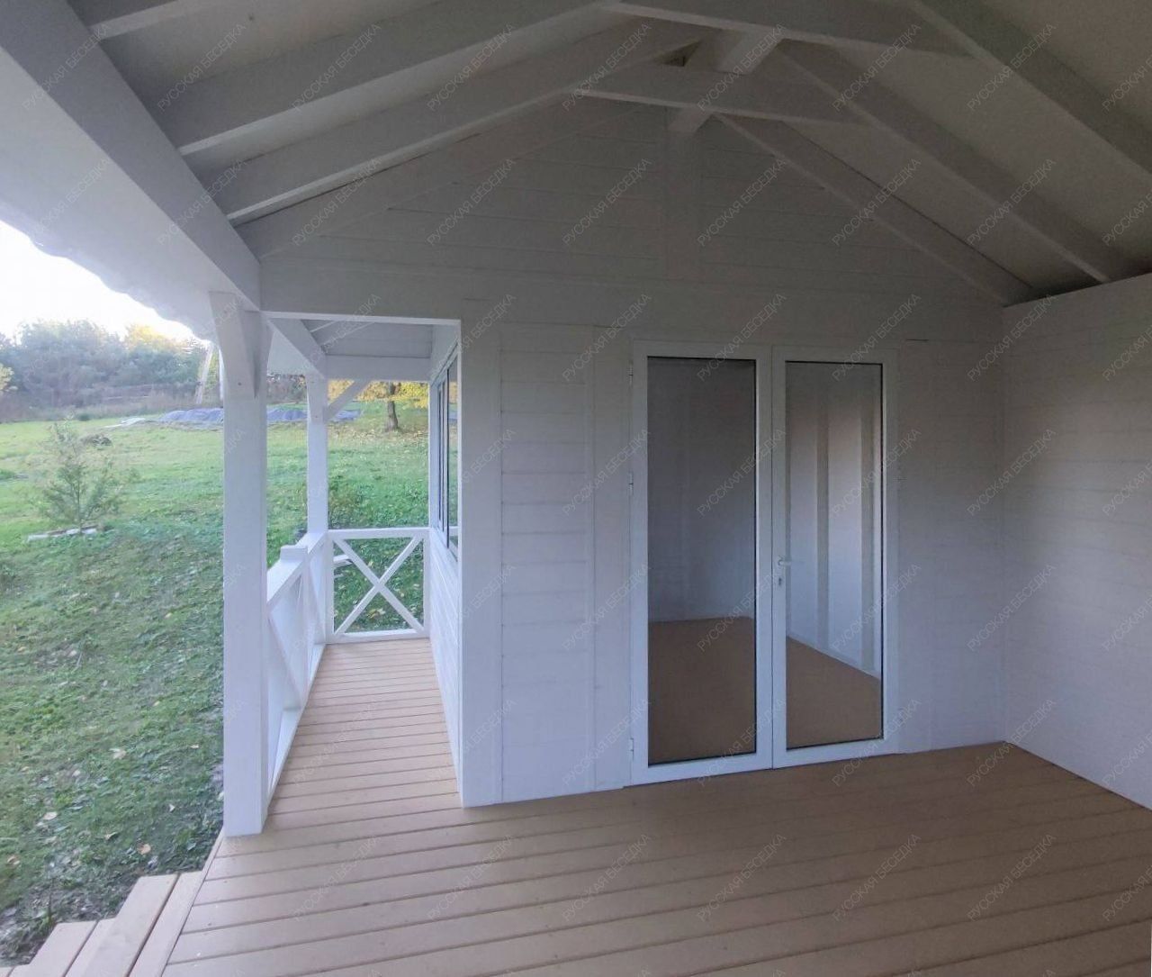 Имитация бруса 16×135 мм внутри, имитация бруса 21×135 мм снаружи.