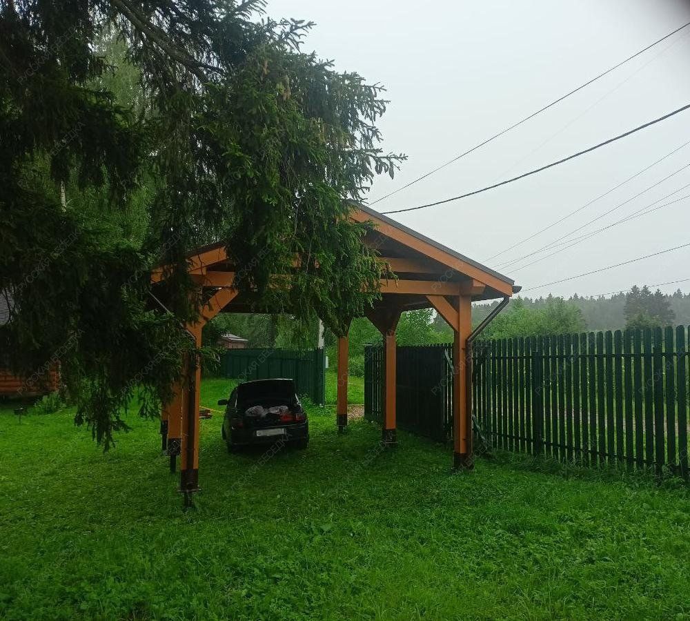 Навес из дерева послужит отличным парковочным местом для одного или нескольких автомобилей.