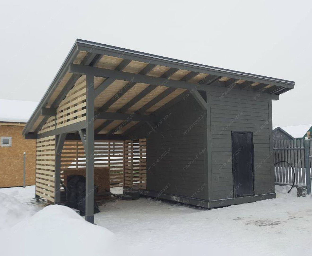 Навес из дерева послужит отличным парковочным местом для одного или нескольких автомобилей.