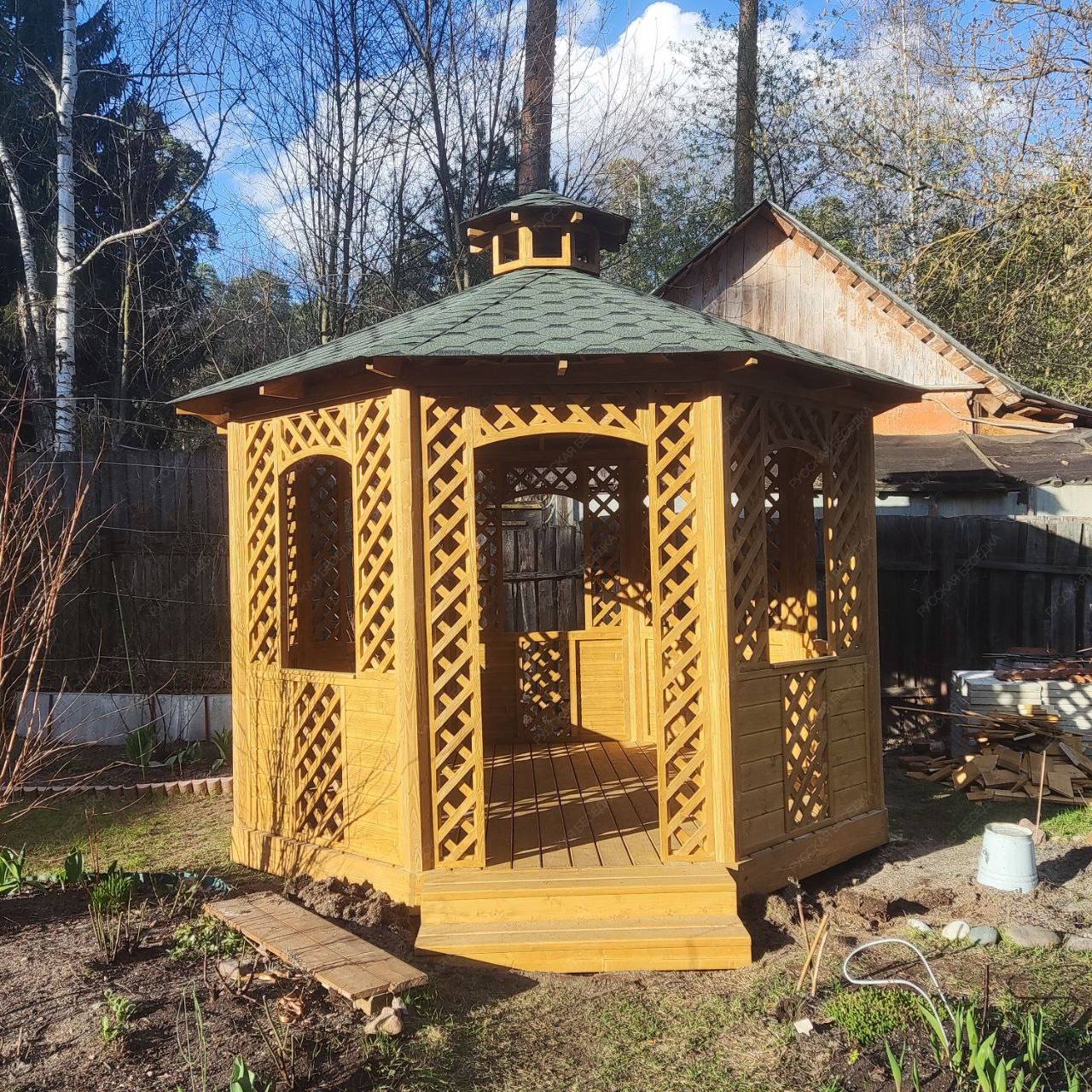 Беседка выполненная из лучших пород древесины, прослужит долгие годы и не потребует особого ухода и обслуживания. Специальные лакокрасочные материалы которые мы используем, предотвратят старение, гниение и заражение грибком конструкции кухни. Используемая огнебиозащита образует полупрозрачное полуматовое покрытие, стойкое к влаге, УФ-излучению, перепадам температуры и другим атмосферным воздействиям.