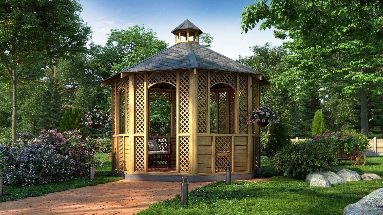 Современный ландшафтный дизайн и беседки - центральные элементы загородного участка. Беседка должна размещаться в таком месте участка, где вам будет комфортно находиться, а также она должна отвечать своему назначению и притягивать взгляды. Беседка является уникальным строением, с ее помощью можно отдохнуть за чашечкой кофе, укрыться от знойного солнца или провести шумный праздник в кругу семьи и друзей.