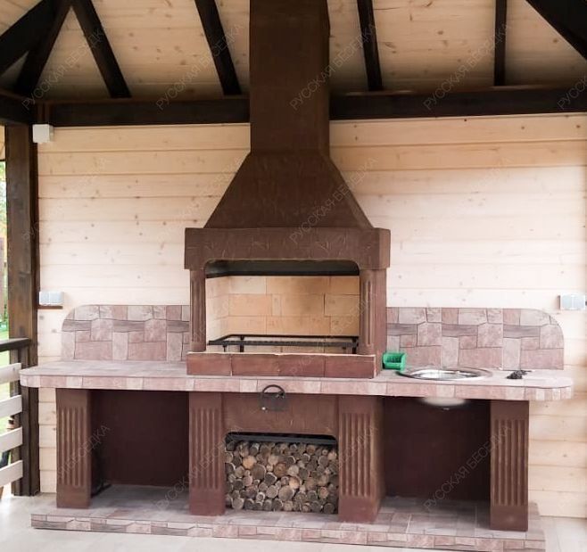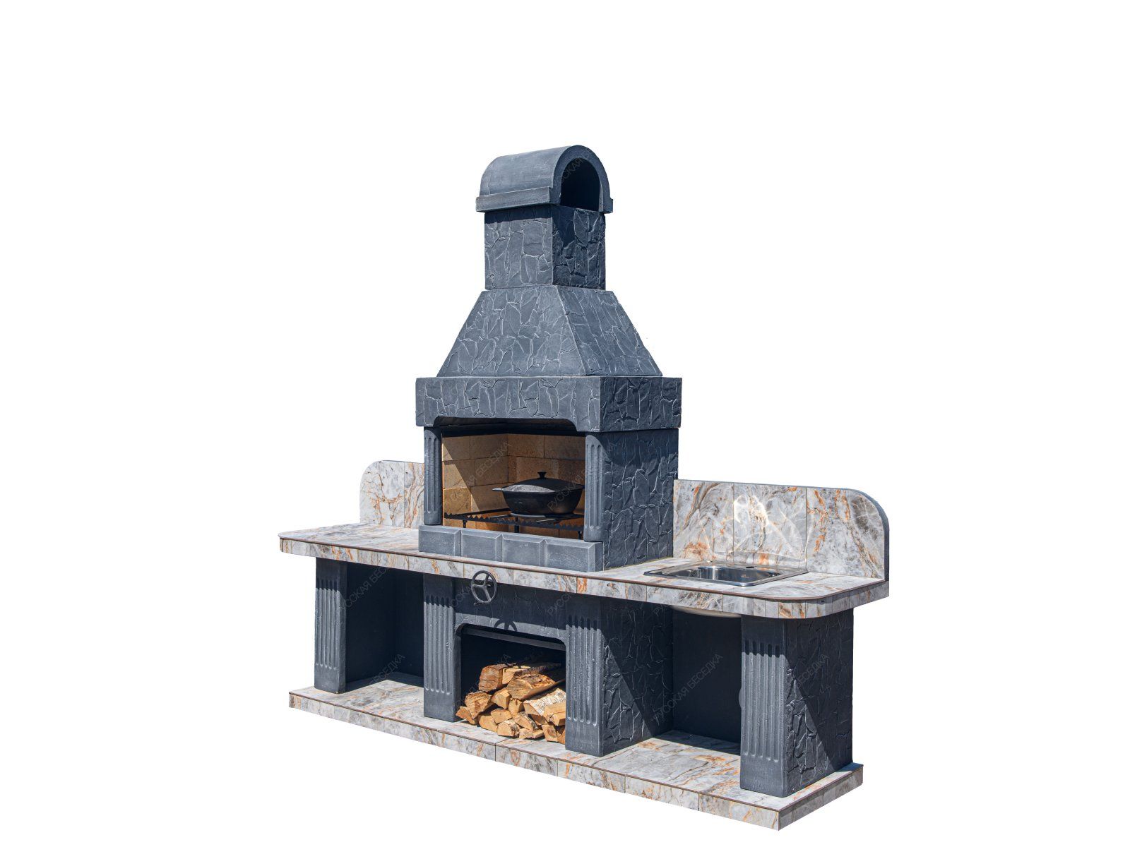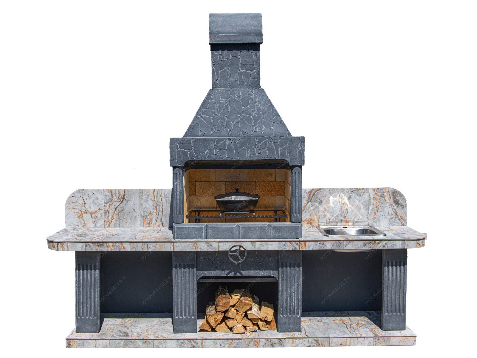 Барбекю-комплекс сделан из армированного огнеупорного бетона с добавлением керамзита.