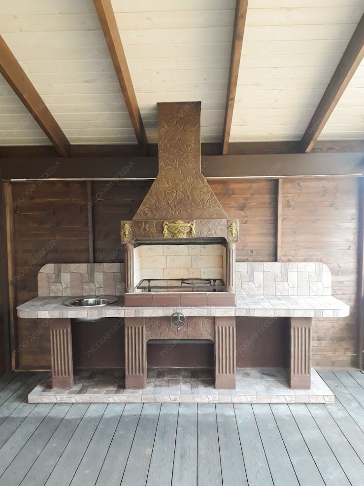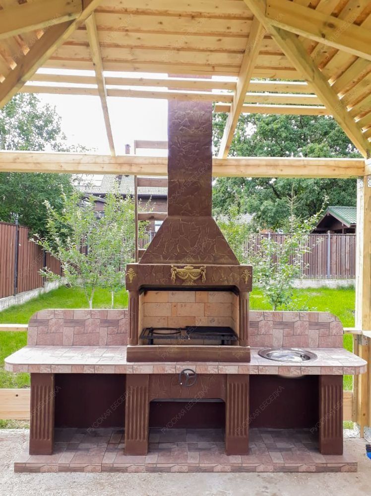 Большая печь-барбекю для дачи — это, скорее, целый комплекс для настоящих любителей готовить. Конструкция идеально впишется в просторную беседку или летнюю кухню, закрытый дворик.