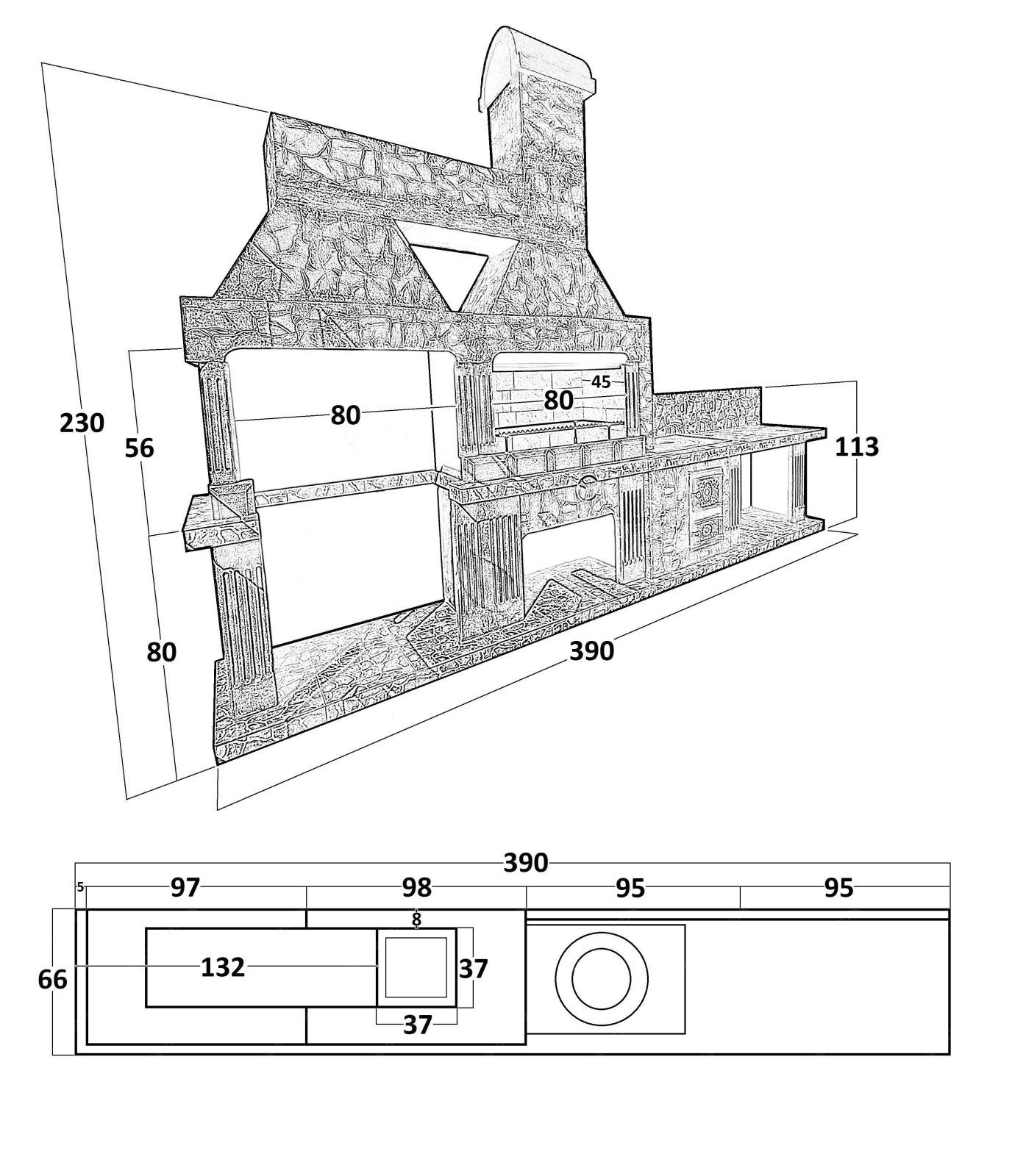 Барбекю-комплекс сделан из армированного огнеупорного бетона с добавлением керамзита.