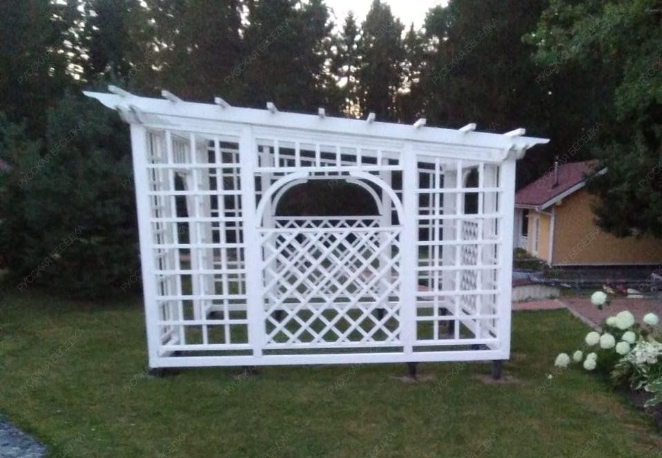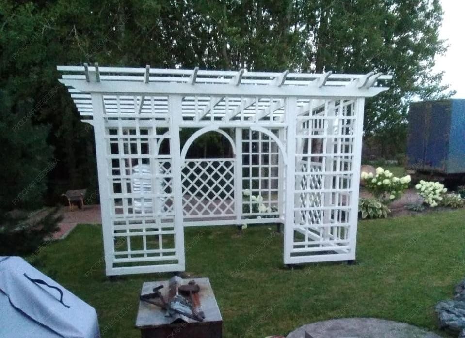 Пергола с навесом обеспечивает надежную защиту от солнечных лучей, создавая тенистое пространство для отдыха. Она станет идеальным местом для встреч с друзьями, чтения книг или приема пищи на свежем воздухе.