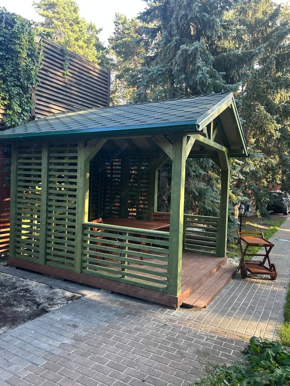 Беседка выполненная из лучших пород древесины, прослужит долгие годы и не потребует особого ухода и обслуживания. Специальные лакокрасочные материалы которые мы используем, предотвратят старение, гниение и заражение грибком конструкции кухни. Используемая огнебиозащита образует полупрозрачное полуматовое покрытие, стойкое к влаге, УФ-излучению, перепадам температуры и другим атмосферным воздействиям.