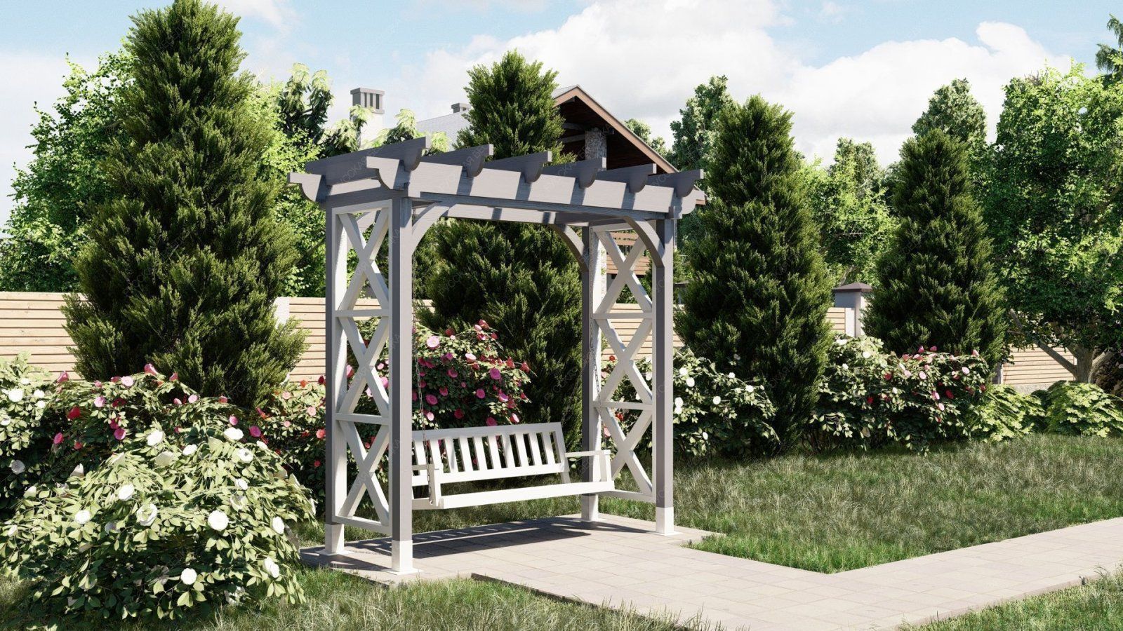 Эти качели идеально вписываются в ландшафт вашего участка, добавляя ему стильный и современный акцент. Они станут любимым местом для всей семьи, где можно провести время в общении и отдыхе.