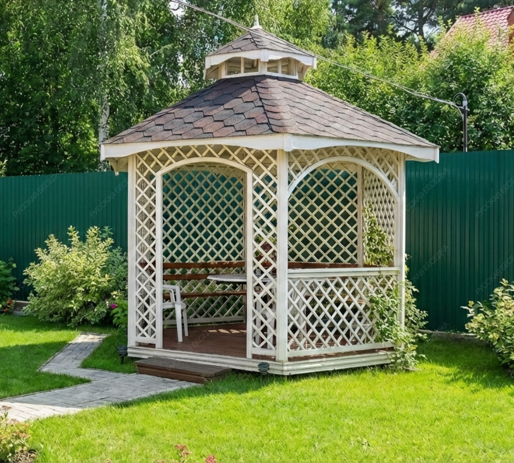 Современный ландшафтный дизайн и беседки - центральные элементы загородного участка. Беседка должна размещаться в таком месте участка, где вам будет комфортно находиться, а также она должна отвечать своему назначению и притягивать взгляды. Беседка является уникальным строением, с ее помощью можно отдохнуть за чашечкой кофе, укрыться от знойного солнца или провести шумный праздник в кругу семьи и друзей.