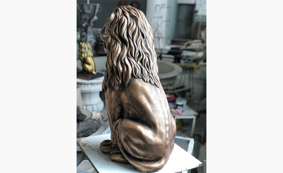 Классическая скульптура сидячего льва станет превосходным украшением парадного входа вашего жилья. Открытая пасть хищника, роскошная грива и впечатляющая мускулатура делает эту статую, пожалуй, лучшим предложением на рынке РФ. Чаще всего эти скульптуры используют для украшения парадного входа в дом и устанавливают на парапеты лестницы парой. При необходимости скульптуры можно закрепить клеем или анкерами. В нашем каталоге есть подставка, которую дополнительно можно приобрести для этой статуи.                                                  Статуи сидящих львов станут главным украшением вашего парадного въезда или входа в здание. Безупречная пластика хищного животного, искусно проработанная морда и грива, проступающий рельеф мускулатуры, – все это отличает наших львов от большинства скульптур, предлагаемых на российском рынке. Классический вариант использования сидящих львов – украшение входной группы. Животных, обычно в парном исполнении, устанавливают при въезде на частную территорию, водружают на парапет у входа в дом, украшают ими вход с улицы в кафе, рестораны, общественные учреждения. Не менее успешно львы зарекомендовали себя в качестве садово-парковых скульптур, элементов убранства просторных интерьеров и офисных помещений. Варианты использования королевских львов не ограничиваются ничем, кроме фантазии заказчика. При относительно небольшой высоте в 85 см масса скульптуры довольно внушительна – 130 кг. Смещенный к низу центр тяжести позволяет львам очень устойчиво размещаться на ровной поверхности, что исключает необходимость вспомогательного крепежа. Для дополнительной устойчивости и эстетичности оформления мы предлагаем специальную подставку 42 х 42 х 7 см. Декоративный подиум с аккуратным кантиком можно крепить к поверхности на плиточный клей, фиксировать анкерными болтами или просто установить на ровную поверхность. Если вы хотите обезопасить скульптуру от посягательств вандалов, её также желательно приклеить к подставке связующим раствором. Рекомендуем устанавливать и выравнивать статую на подставке максимально аккуратно, чтобы не повредить декоративное покрытие подиума.