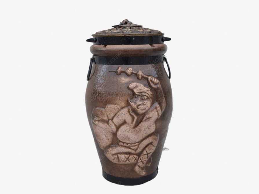 "Барельеф" не только удобная и функциональная керамическая печь, его внешнему виду уделено много внимания. Поверхность украшена  рельефными орнаментами и элементами из металла. Такой тандыр станет прекрасным украшением для вашего загородного участка.