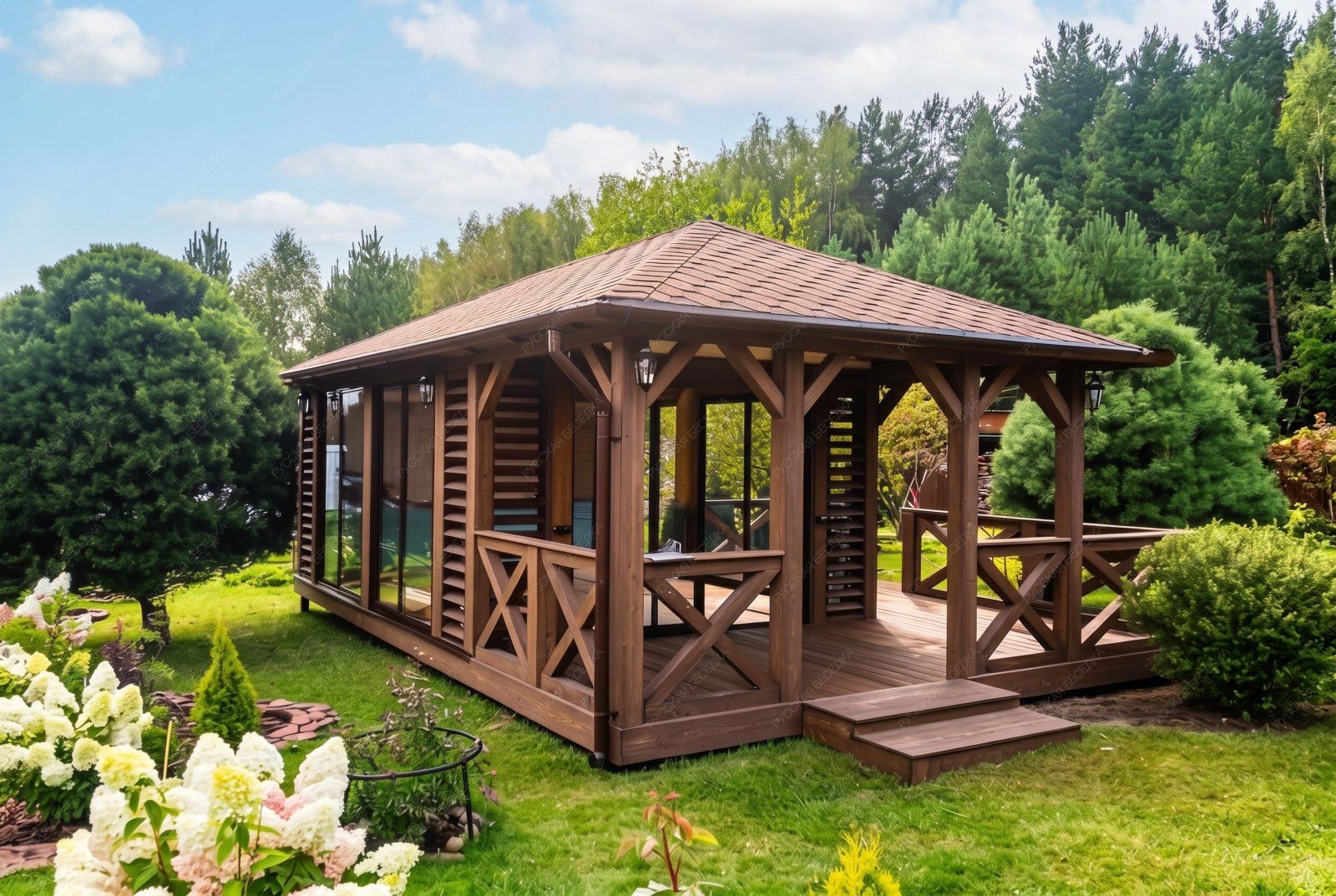 Современный ландшафтный дизайн и беседки - центральные элементы загородного участка. Беседка должна размещаться в таком месте участка, где вам будет комфортно находиться, а также она должна отвечать своему назначению и притягивать взгляды. Беседка является уникальным строением, с ее помощью можно отдохнуть за чашечкой кофе, укрыться от знойного солнца или провести шумный праздник в кругу семьи и друзей.